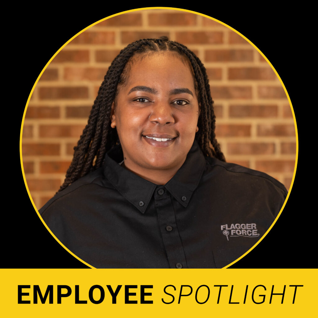 Nearing her 10th year working at Flagger Force, Dawn reminisces about her first week on the job, “It was November, and it was cold. It was my first job as a crew member, and I was assigned to work with an advanced crew leader (ACL) who had been with the company for some time. I didn’t realize that we would literally stand outside all day, so I was shocked when I found out. But my ACL made it fun. They were willing to explain all things traffic control, which only helped my confidence during the first week.”