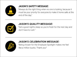 Within a few months, Jason was promoted from a Crew Member to a Crew Leader, then quickly advanced to an Advanced Crew Leader. “As soon as I got into a Flagger Force truck, I took every job I could. I wanted to learn everything from arrow panel setups to more advanced highway jobs. You name it, I tried it.” His appetite for growth and deep respect for safety helped pave the way to his current role as an Area Supervisor.