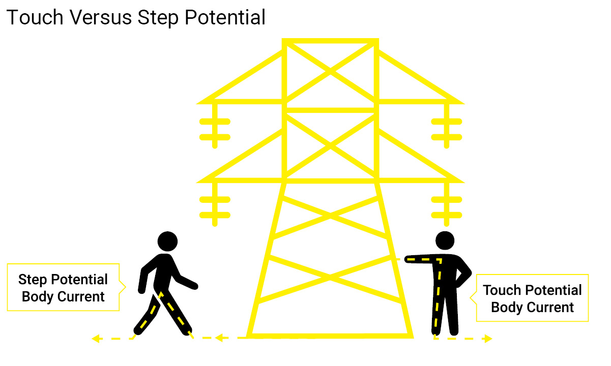 The dangers of encountering electric shock are referred to as touch potential and step potential. It’s important to understand these risky situations so you can avoid electrocuting yourself and the surrounding area.