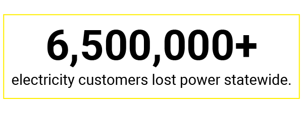 Getting the power back is not easy in the best of circumstances, but Irma’s wake created extenuating challenges. Over 6.5 million businesses and residences lost power statewide. That’s 64 percent of all electric sector accounts in Florida. Fallen trees and overturned vegetation blocked roadways forcing crews to clear the debris before work could begin. For FPL, it was the largest number of customer outages in company history, with more than 3.5 million customers without power. The largest restoration workforce in United States history set up numerous staging sites packed with 28,000 workers from 30 different states and Canada.