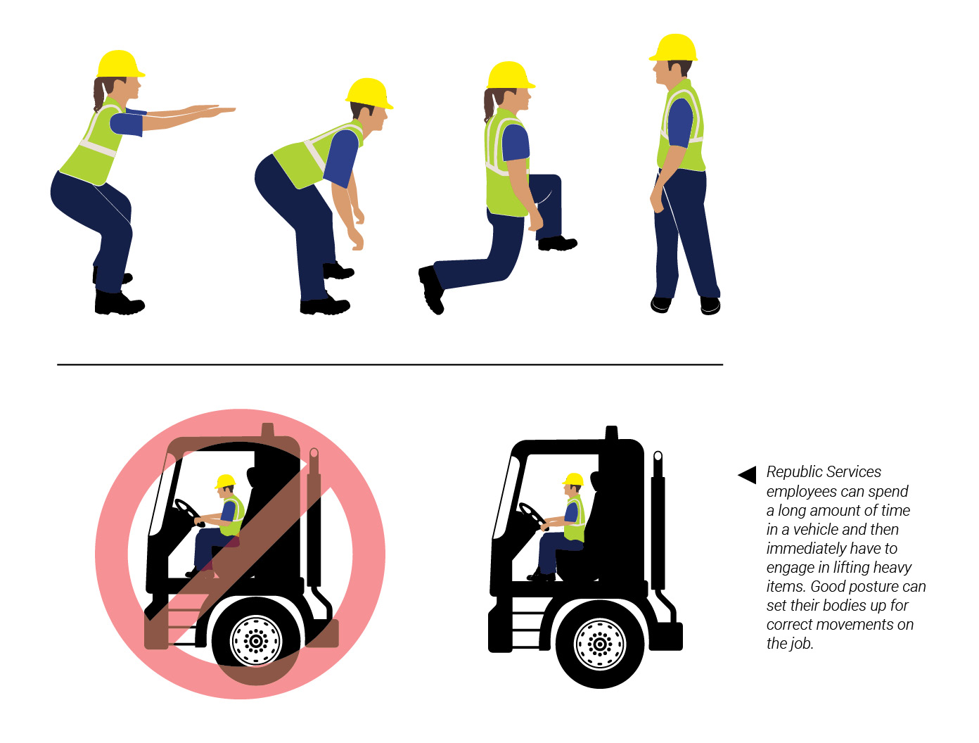While the solid waste industry continues to move toward more automation, physical exertions are still required of their drivers, operators, and technicians. That’s why Republic Services has built a safety culture that changed movement patterns to change movement behaviors for over 36,000 employees. Over the past 10 years, that culture has resulted in safety performance that has been 40% better than the industry average, based on Occupational Safety and Health Administration data.